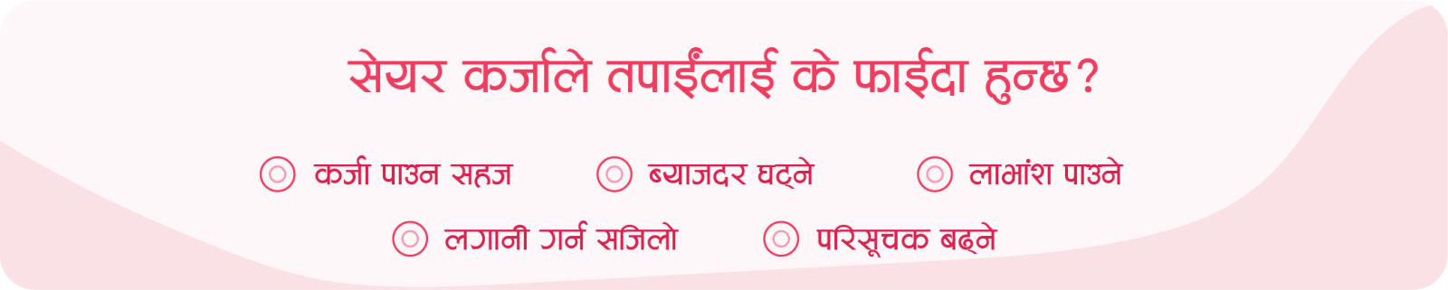 (ङ) सेयर बजार परिसूचक (इन्डेक्स) बढ्न सक्ने: सेयर कर्जा बढ्दा सेयर खरिदको लागि पुँजी बढ्छ, जसले गर्दा नेप्सेको इन्डेक्समा सकारात्मक सुधार आउन सक्छ।