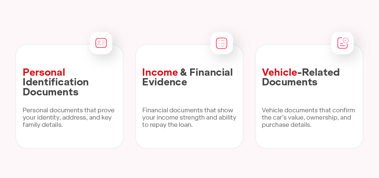 | Blue Book Copy | Required for used/second-hand vehicle financing |